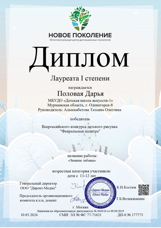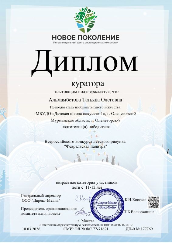 Поздравляем победителей Всероссийского конкурса детского рисунка «Февральская палитра» (г. Москва).