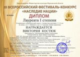 Поздравляем с яркой победой Костюк Викторию - диплом Лауреата I степени, Захарова Андрея - диплом Лауреата II степени.